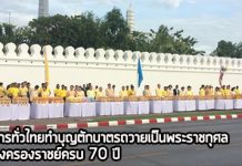 พสกนิกรทั่วไทยทำบุญตักบาตรถวายเป็นพระราชกุศลในหลวงครองราชย์ครบ 70 ปี