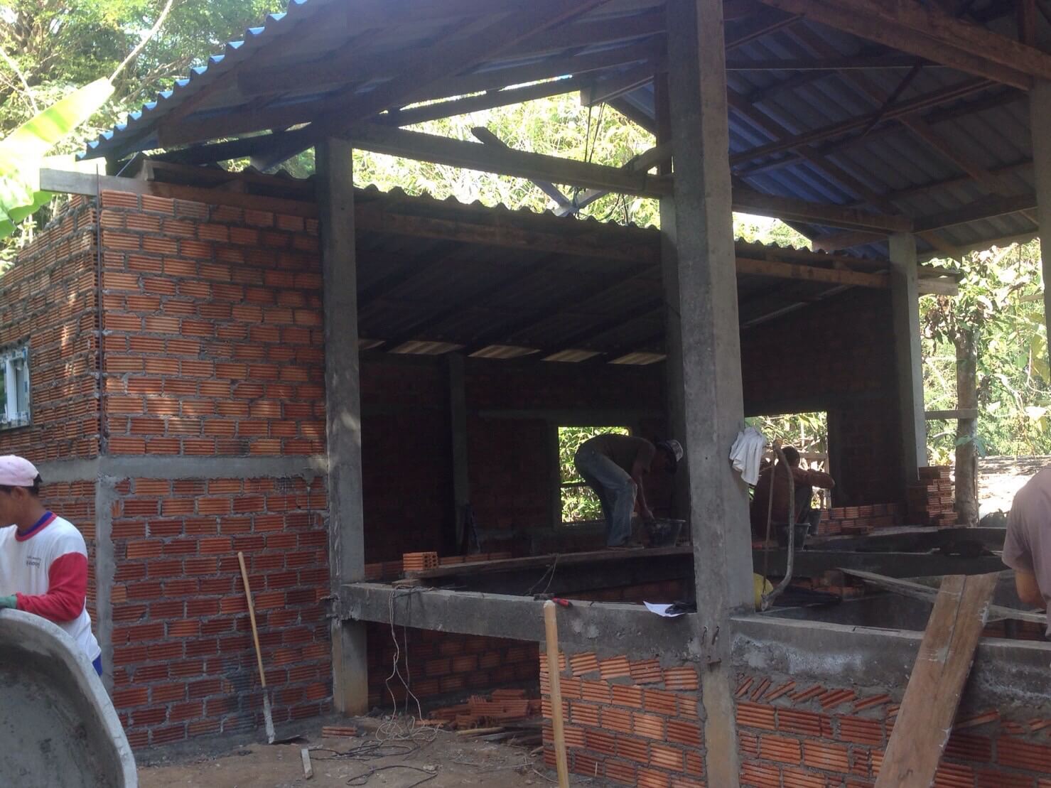 ** งานโครงสร้าง ขึ้นเสา มุงหลังคา ขอแรงญาติๆ มาช่วยค่ะ ตรงนี้ประหยัดไปได้เยอะเลยทีเดียวค่ะ ขอขอบพระคุณลุงๆ ทั้งหลายมา ณ ที่นี้ด้วยค่ะ**