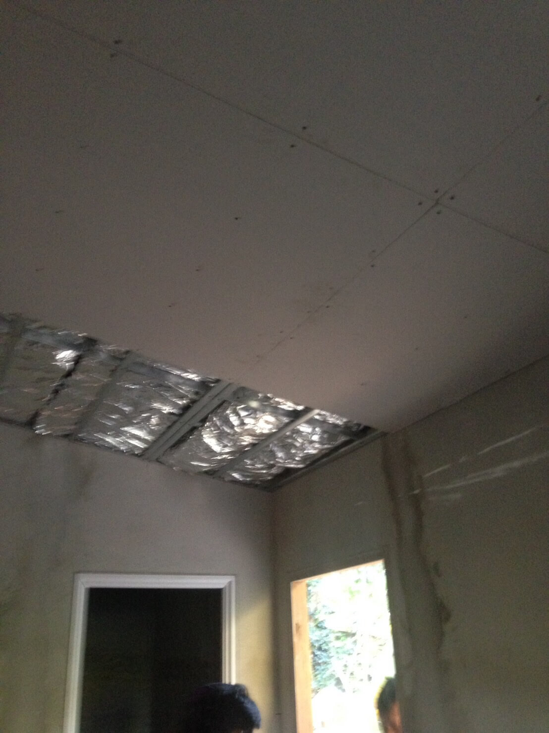 สุดท้ายเอาเข้าจริงๆ ตอนกลับไปตรวจงาน ช่างมีการตัดแผ่นฉนวนโดยไม่เก็บหัวท้ายให้ (บางจุด) แถมทำขาดแล้วไม่แปะเทปให้ด้วย แทบร้องไห้เพราะนั่นเท่ากับว่าที่ปูไปไม่มีความหมายเลยจริงๆ ฮืออออ สุดท้าย ด้วยความโมโห ปีนขั้นฝ้าเอง ค่อยๆเหยียบคาน แปะเทปอะลูมิเนียมเอง เก็บหัวท้ายเองเท่าที่ทำได้ จุดไหนที่อยู่กลางบ้าน สุดมือจะเอื้อมถึงก็ต้องปล่อยไปค่ะ