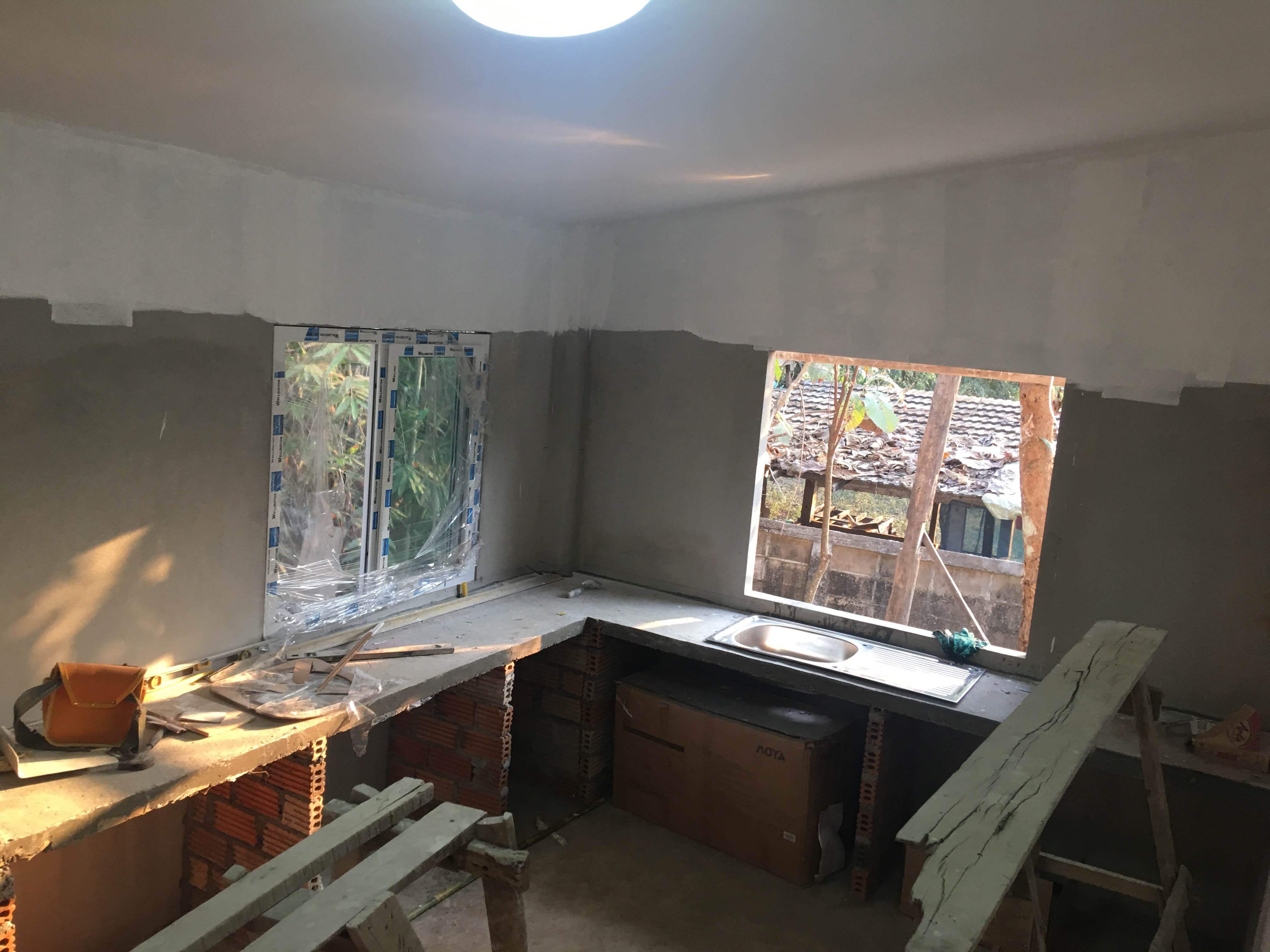 พอก่อเสร็จก็เริ่มฉาบผนังค่ะ ขั้นตอนนี้ตอนเริ่มทำเนื่องจาก จขกท ทำงาน กทม แต่บ้านสร้างที่ลำปาง ดังนั้นจะมีความกังวลค่อนข้างเยอะ เพราะช่างออกแนว อินดี้ ทำอะไรไม่ค่อยจะปรึกษาค่ะ