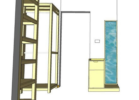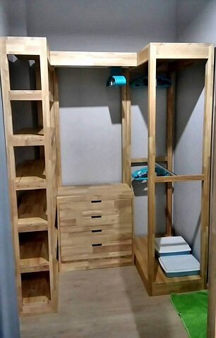 ชิ้นสุดท้ายที่ชอบที่สุด คือห้องแต่งตัวค่ะ …ตอนแรกเป็นปัญหาที่สุด เพราะมันเล็กมากสำหรับการเก็บเสื้อผ้าและแต่งตัวของคน 2 คน ออกแบบส่วนนี้นานที่สุด เดินดูตู้เสื้อผ้าของทุกแบรนด์ก็ไม่ลงตัว เลยให้โจทย์เจ้าของร้านเฟอร์ที่สั่งทำไปว่า ขอโครงตู้แบบไม่มีบานรูปตัว U มีชั้นแขวนผ้า ลิ้นชัก และชั้นวางเสื้อผ้า พร้อมกับโต๊ะเครื่องแป้งขนาดเล็ก … จึงได้ออกมาแบบนี้ค่ะ