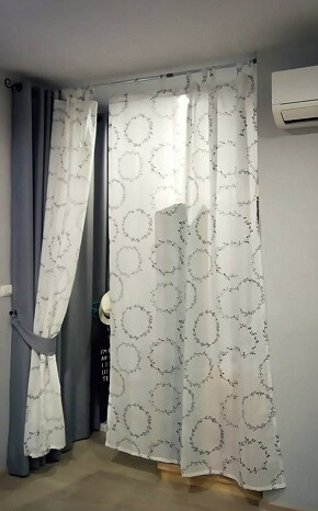 เอาผ้าม่านมากั้นสักหน่อย เพื่อความเป็นสัดส่วนค่ะ