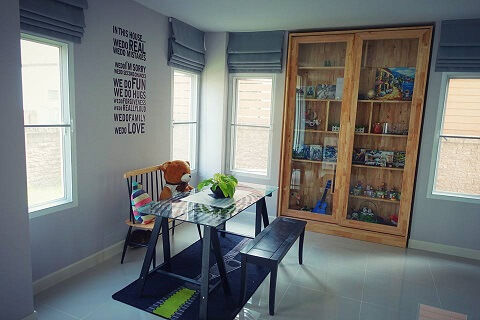 แต่งบ้านราคาประหยัด ชั้นล่างหมดแล้วค่ะ เรามาต่อกันที่ห้องนอนชั้นบนนะคะ บ้านหลังนี้มี 3 ห้องนอน เราสั่งทำเฟอร์นิเจอร์ในส่วนของ Master Bedroom เท่านั้นค่ะ อีกห้องทำเป็นห้องพระซึ่งยกโต๊ะพระมาจากบ้านเก่า ส่วนห้องเล็กอีกห้องปล่อยไว้โล่งๆ ค่ะ