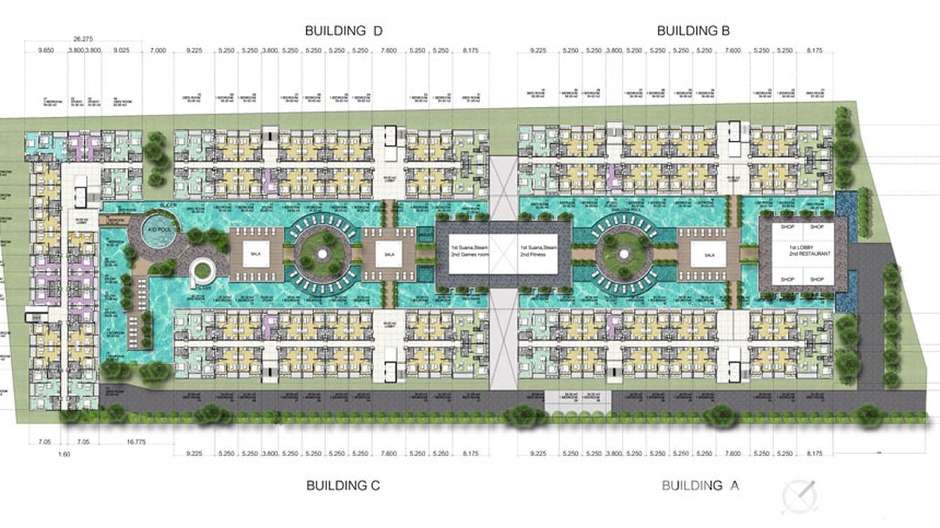 The rooms are divided into city view and pool view, which are available in various room sizes and layouts. The common area can be called complete in a resort-style. The staff provides such impressive professional services. There is also a shuttle service to the beach and a 24-hour security system.