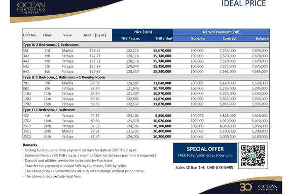 1 Bedrooms Apartments For Sale near Ban Amphur, Chonburi