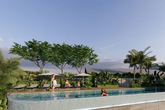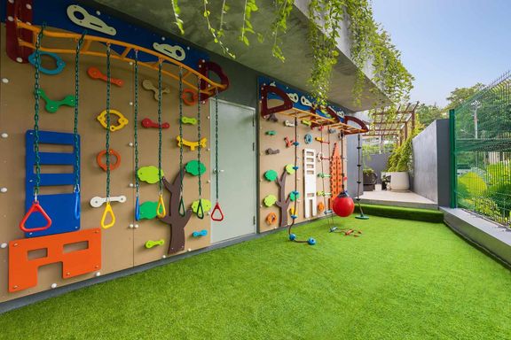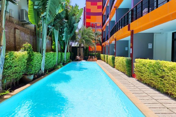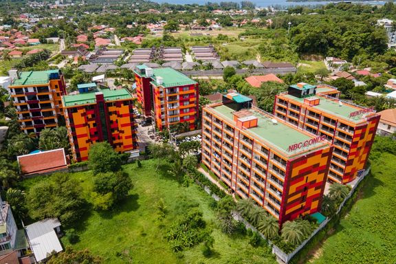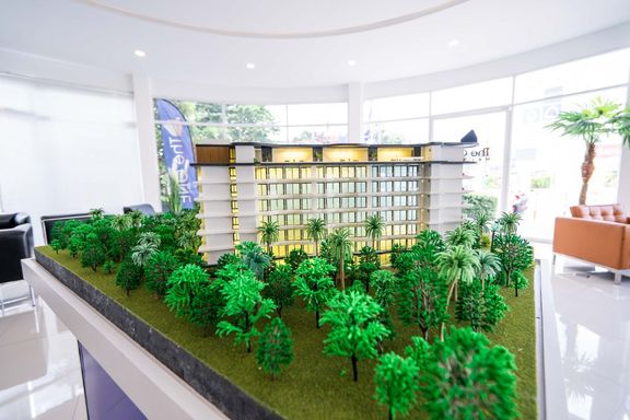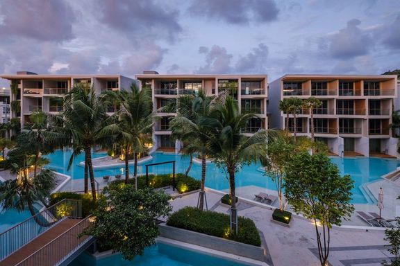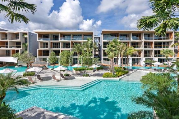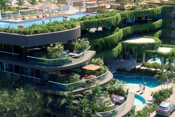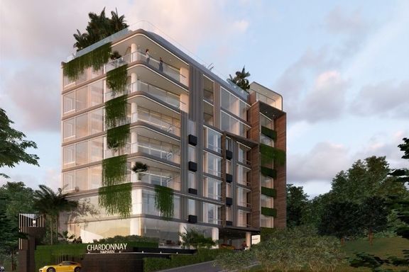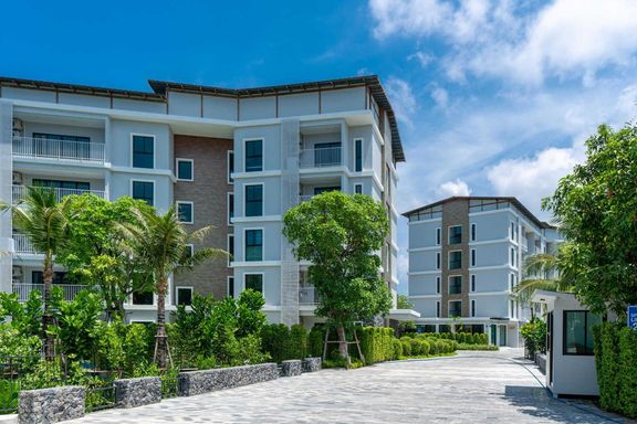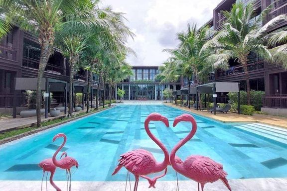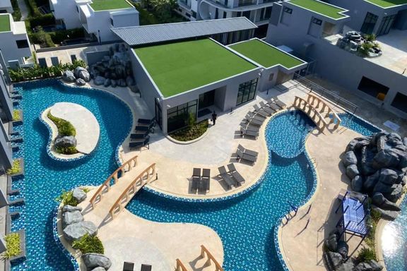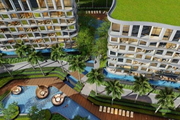 Calypso Garden Residences, a luxurious low-rise condominium with a modern European design with a bright-color scheme interior and wooden materials, cr...