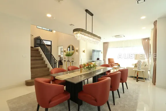 Fully furnished 3 bedrooms, 4 bathrooms semi-detached house for rent with a floorsize of 387 squaremeters, at Baan Klang Mu...