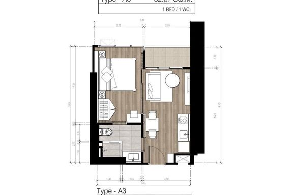 1 Bed1 Bath40 SqM฿550/SqMCondo