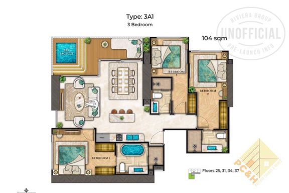 The Cove Pattaya — Na Kluea, Pattaya, Chon Burifor sale condo The Cove pattaya 3 Bed room 92.53 Sq.m graden view large balcony (S03-2345)