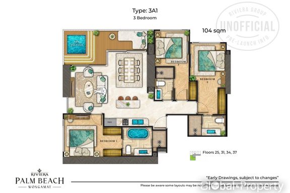 Arom Wongamat — Na Kluea, Pattaya, Chon BuriKT0036🏖️3Bedroom 192sqm Floor PH 🌊Sea view AROM Wongamat Beach🦀North Pattaya