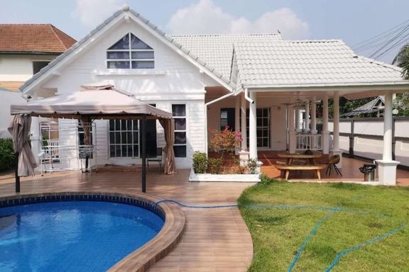 House with 3 bedrooms, 2 bathrooms is located in a village in East Pattaya, at soi Siam Country Club. The area of the plot is 140 sq.wah (560 sq.m)....