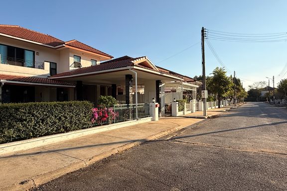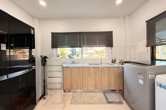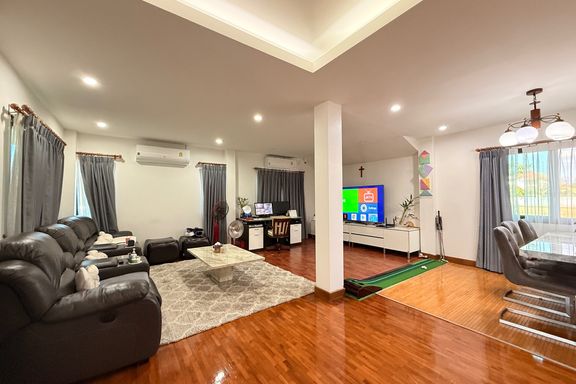 This two-storey detached house is located in San Kamphaeng, offering a perfect balance between peaceful living and convenient access to Chiang Mai cit...