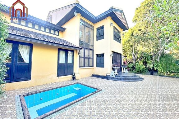 For Sale: Luxurious 2-story detached house on Wat Bang Nam Phueng Road, Phra Pradaeng, Samut Prakan. Resort-style vacation home in Bang Krachao. RUJ...