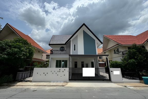1 / 10฿2,950,000 3 Beds•3 Baths•160 SqM•฿18,438/SqM•HouseKarnkanok ville 10 — San Phak Wan, Hang Dong, Chiang Mai3 Bedroom House for Sale in San Phak WanThis property is a 160 SqM house with 3 bedrooms and 3 bathrooms that is available for sale. It is part of the Karnkanok ville 10 project in San...