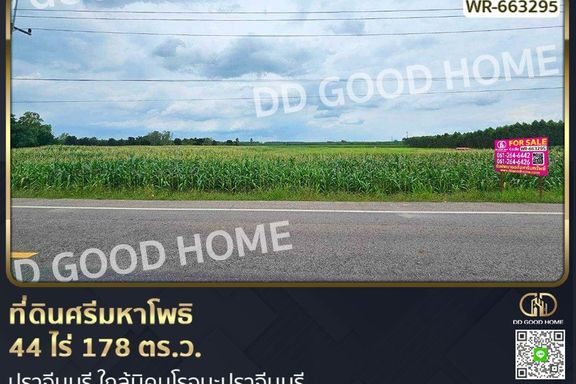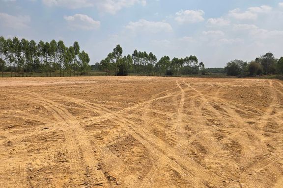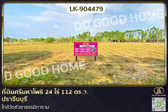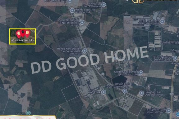 Land for sale in Hua Wa, purple zone, 6 rai, leveled and ready for construction. Located behind Rojana Industrial Park, Prachinb...