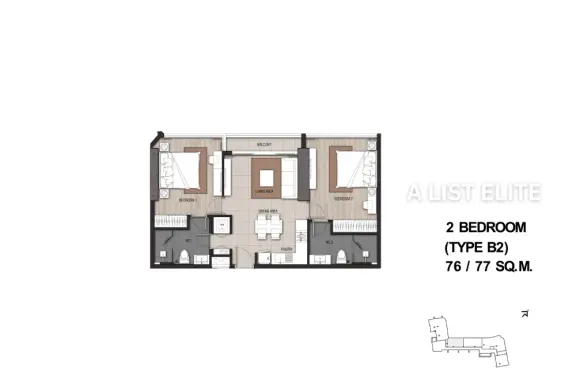 2 Beds2 Baths120 SqM฿708/SqMApartment