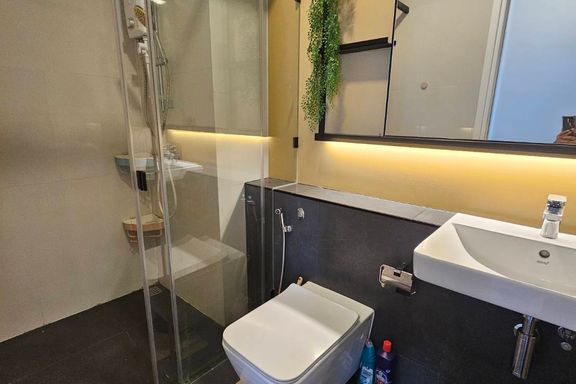 - walk-in closet- digital doorlock- sofa bed- water heater- smart tv LG 45"- Samsung fridge- Sharp microwave- Samsung washer and dryer- 5 ft bed with...