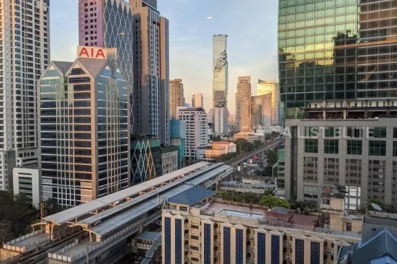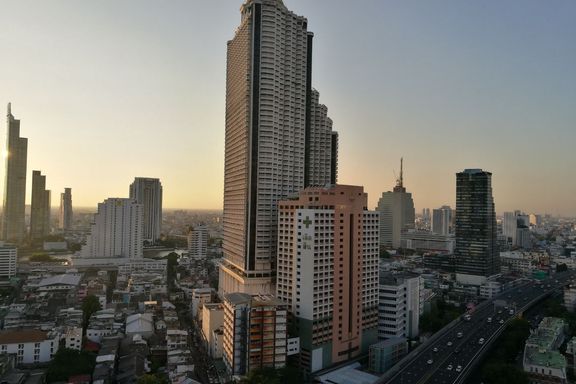 Nusa State Tower Condominium, a high-rise condominium on the potential location of Si Lom Road. It is surrounded by many department stores, office bui...