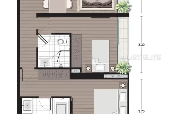 Size: 231.4 sq.m. | 2 Bed | 3 Bath