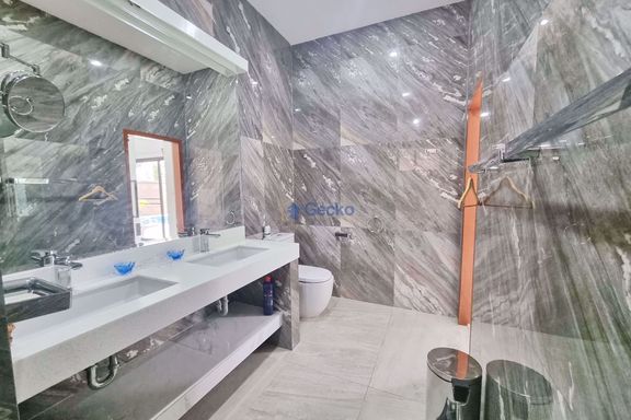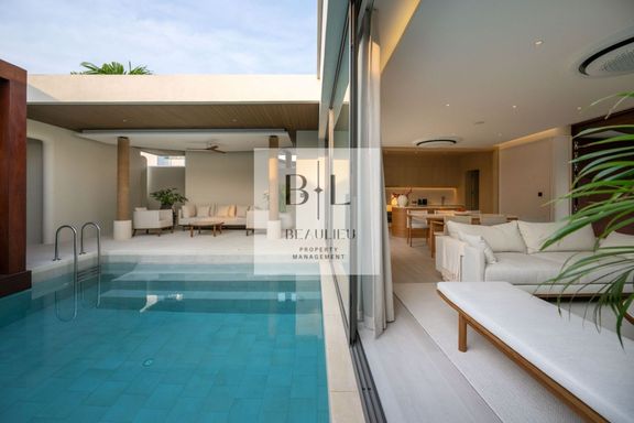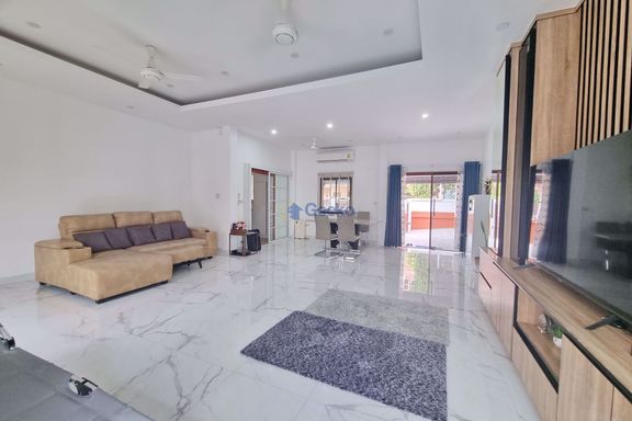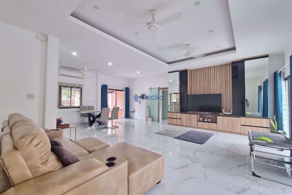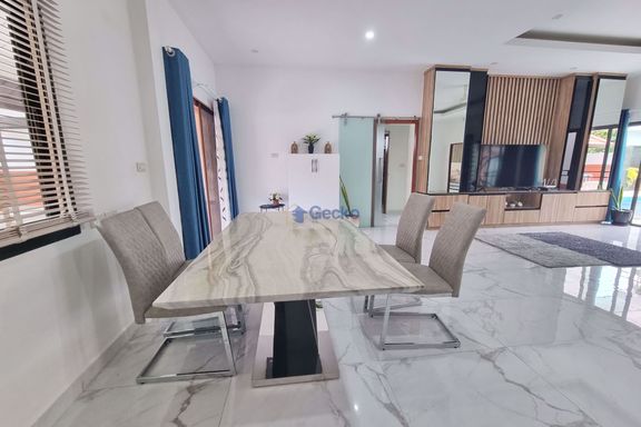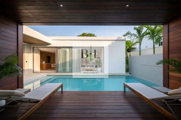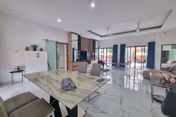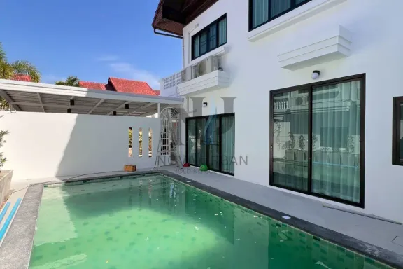 This luxury pool villa is located in Hin Wong Niwet, a prestigious beachfront residential community directly connected to Sukhumvit Road and convenien...