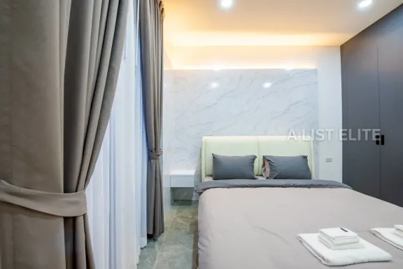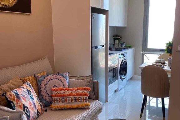 Enjoy modern beachfront living in this stylish 1-bedroom condo at the icon...