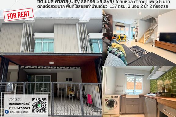 City Sense Salaya â Sala Ya, Phutthamonthon, Nakhon PathomāđāļŦāđāđāļāđāļēāļŦāļĄāļđāđāļāđāļēāļāļāļīāļāļĩāđāđāļāļāļŠāđ āļĻāļēāļĨāļēāļĒāļē āļāļēāļ§āļāđāđāļŪāļĄāđāļāļŠāđāđāļŦāļāđ 3 āļāļāļ 2 āļāđāļģ(āļāļāđāļāđāļāļŠāļ§āļĒ) āđāļāļĨāđāļĄāļŦāļīāļāļĨāđāļāļĩāļĒāļ 5 āļāļēāļāļĩ