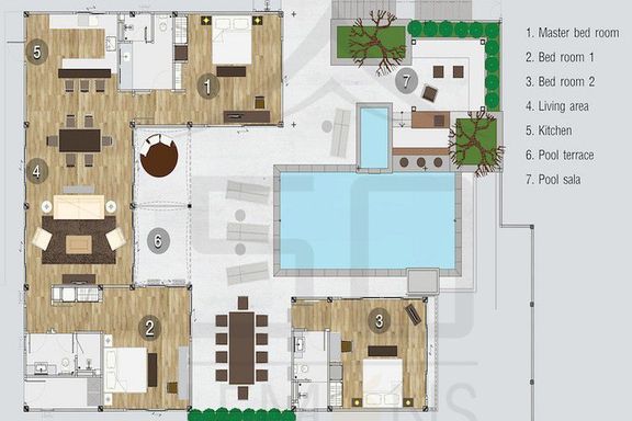 7R0719 This pool villa 3bedrooms 3bathrooms 120,000/month the house location at Rawai estate: total living space 400 sqm. and There’s secure parking...