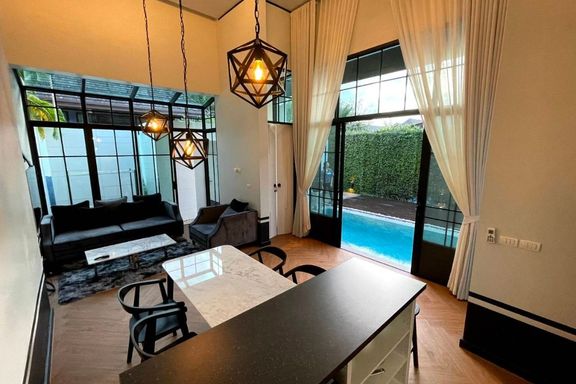 2R0413 This pool villa 2 bedroom 2bathroom 50,000/month the house location at Cherng Talay estate: total living space 70sqw. and There’s secure parki...