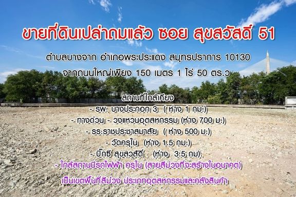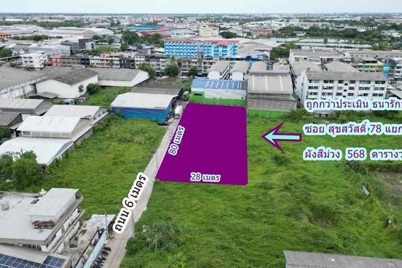 Land, factory, warehouse, usable area 3,500 sq m., total area 3,992 sq m. (2.495 rai)