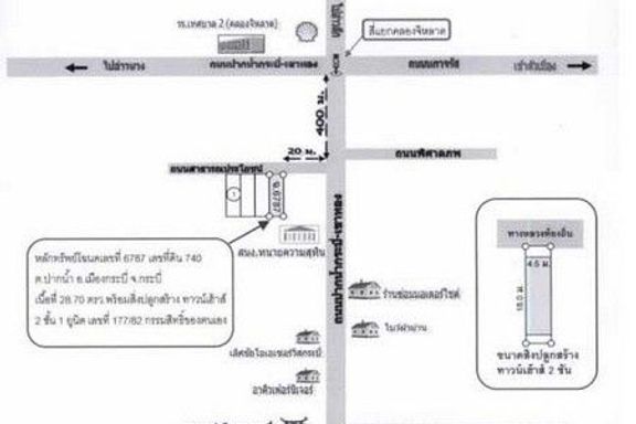 รหัส K00826 ขาย : ที่ดินพร้อมสิ่งปลูกสร้าง อำเภอเมืองกระบี่ กระบี่ ที่ตั้งทรัพย์ : ตำบลปากน้ำ อำเภอเมืองกระบี่ กระบี่ ราคา : 4,173,000 บาท (ราคาใช้ได...