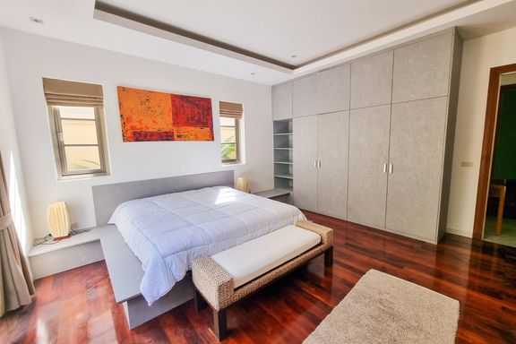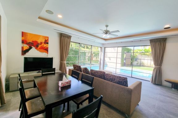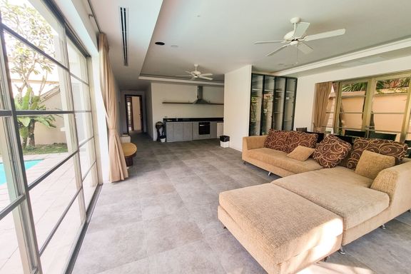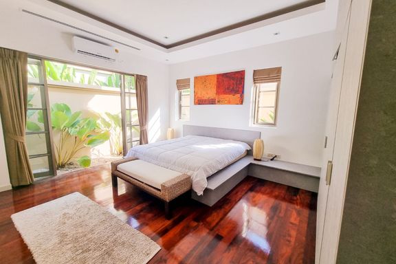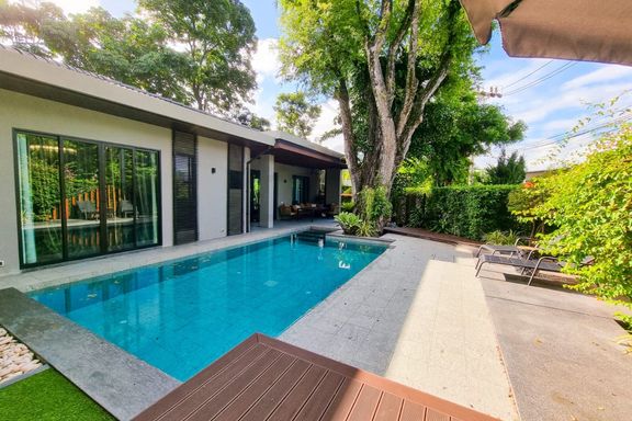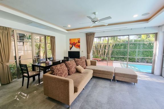 A villa is 3 bedrooms 3 bathrooms with fully renovation floor and build-in furniture. Only 15,500,000 THB Leasehold. Popular estate for good rental...
