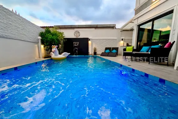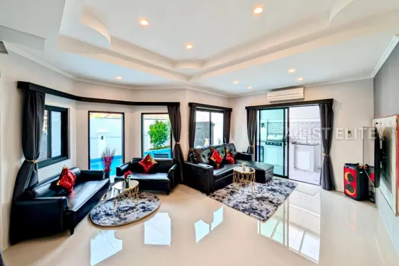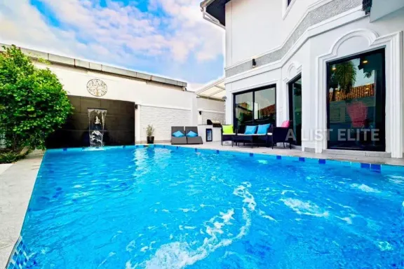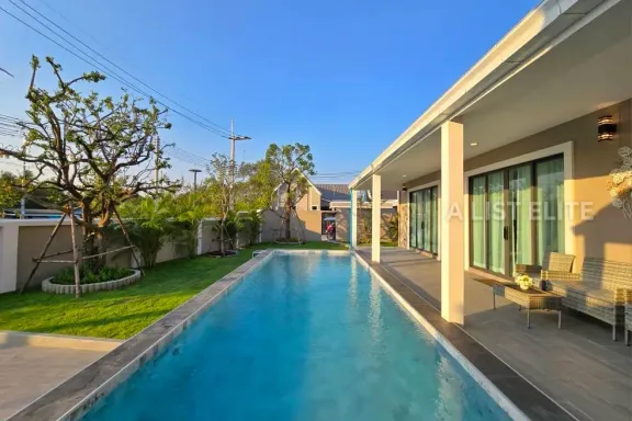 Single-Storey Pool Villa for Sale – Na Jomtien, Pattaya Featured Property3 Bedrooms – 4 Bathrooms – 270 sq.m. usable area – 130 sq.wah land Elegant Po...