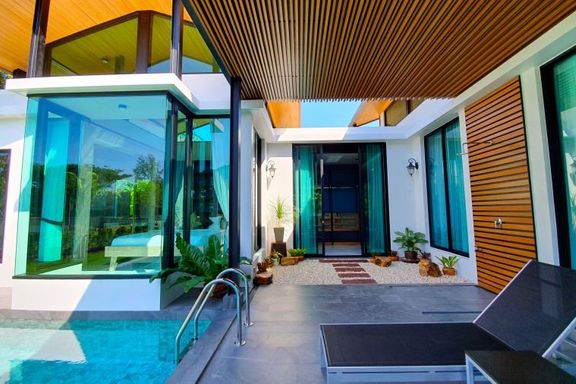Modern Tropical Luxury Pool Villa Near Layan Beach RV-L-86 (1) The Villas have all-Teak floors; Concertina Glass doors and windows; fully fitted, Stat...