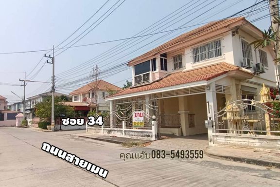 #Sale of 2-story detached house, corner unit Rojana Garden Home Village, located on a very wide main road, corner of Soi 34, Khlong Suan Phlu Subdist...