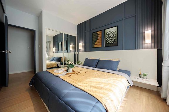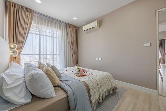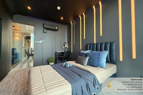 Close to MRT Rama 9 (600m) 2 Bedrooms 2 Bathrooms 1 Living rooms 1 Cocktail Bar area Movie room with star (light) 18th Floor Facing North (Windy,...