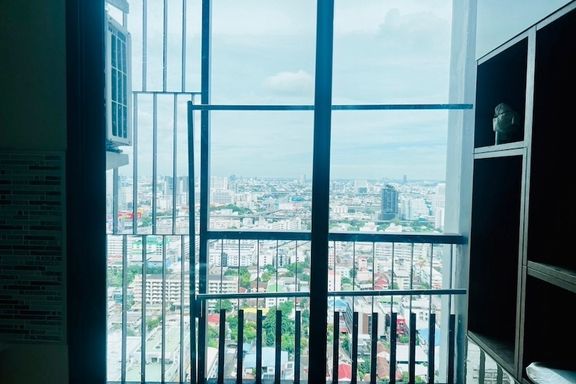 Close to BTS Udomsuk (250m) Duplex type High ceiling 16th Floor Bitec Bang Na and Bangkok Mall view Unblocked view South facing Fully furnished...