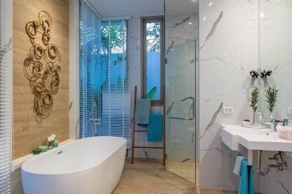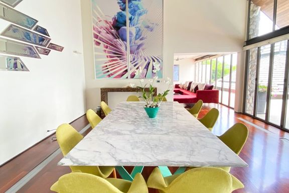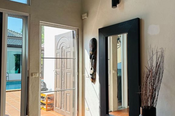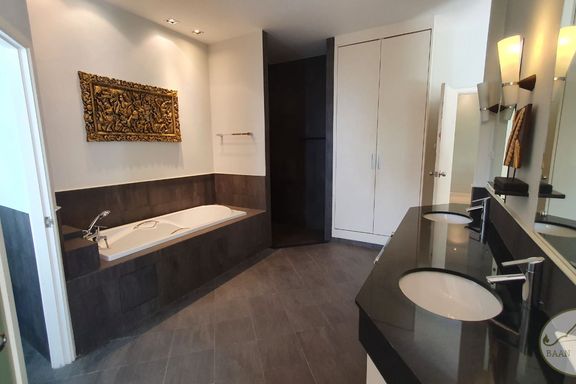 A one of a kind design in Phuket. This 3+1 bedroom stand alone pool villa is located on the slope of Layan hill. Providing a comfortable living space...
