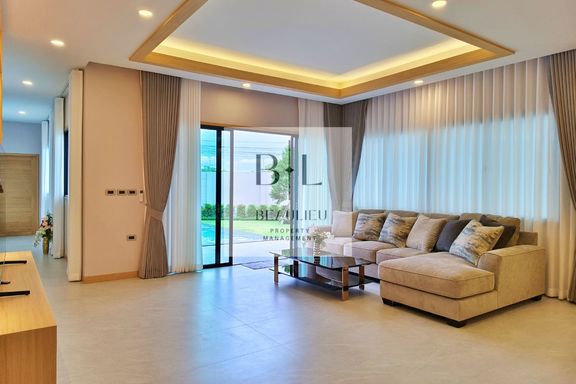 Discover a beautifully designed 3-bedroom, 3-bathroom pool villa in the peaceful and well, established community of The Serene Village in Jomtien. Per...