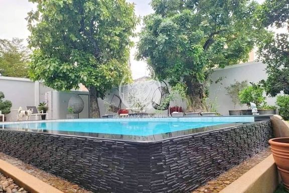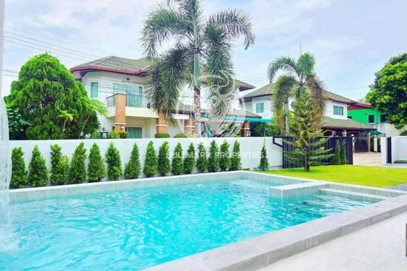 Welcome to your ideal family retreat in East Pattaya! This charming 4-bedroom pool villa offers a spacious living area of 367 sqm and sits on a genero...