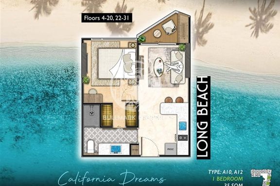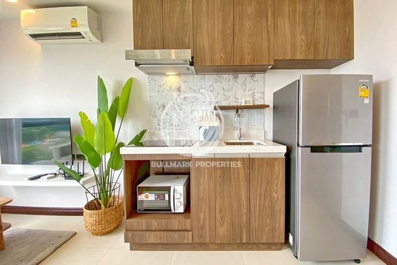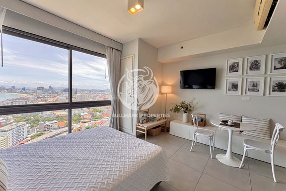 Modern 1-bedroom condo (33.82 sqm) with city views, European kitchen, air conditioning, and spacious balcony. Located in the prime Jomtien area, just...