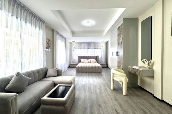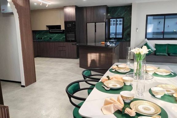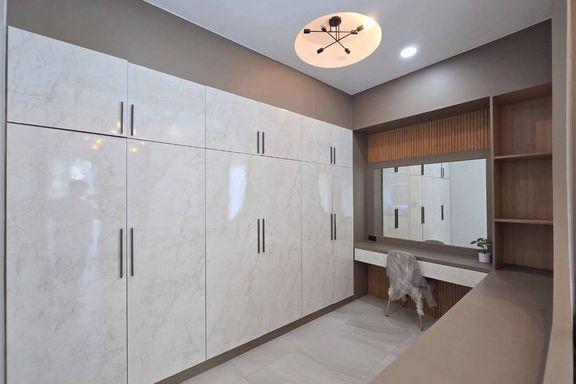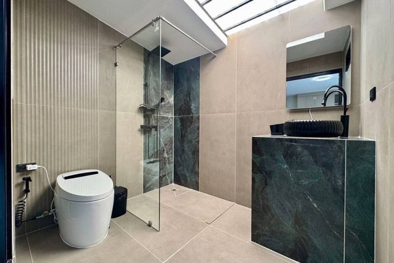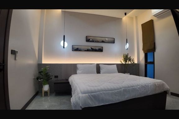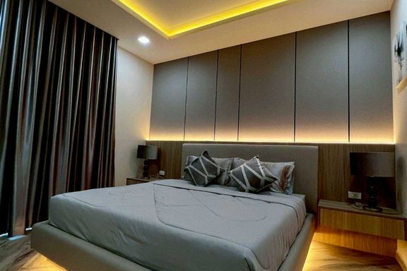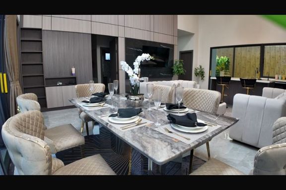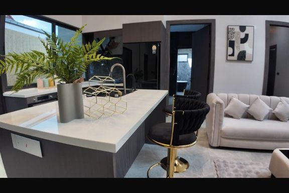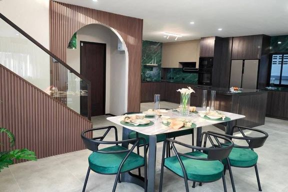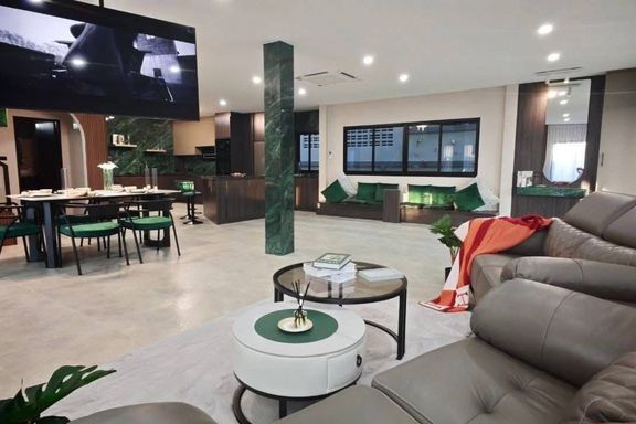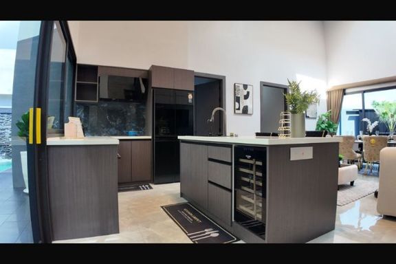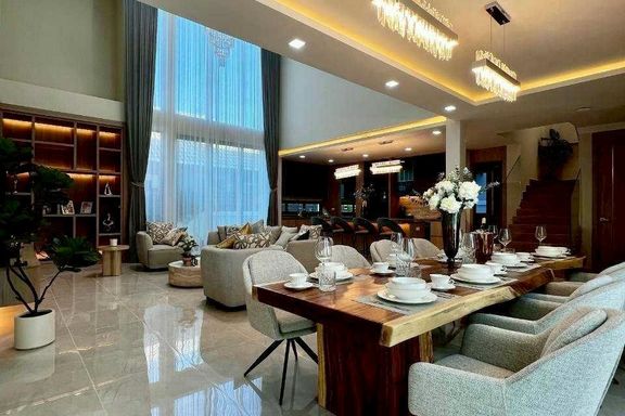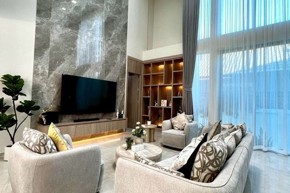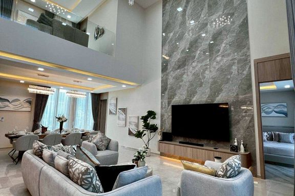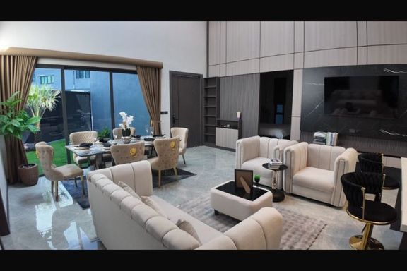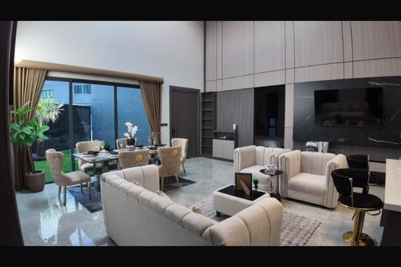 A beautifully designed modern minimalist single house featuring a dramatic 7-meter high ceiling in the living area, creating a bright, spacious, and e...