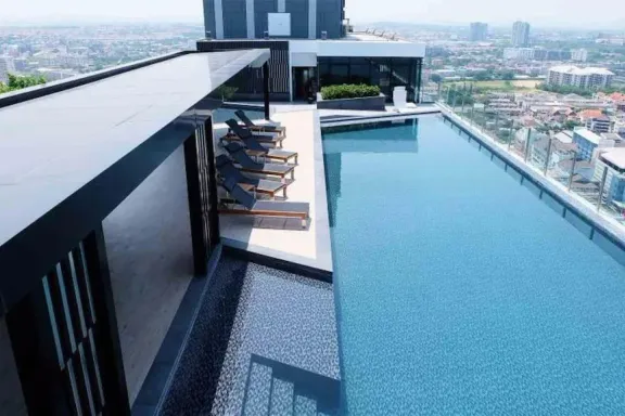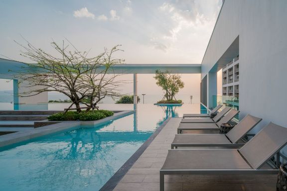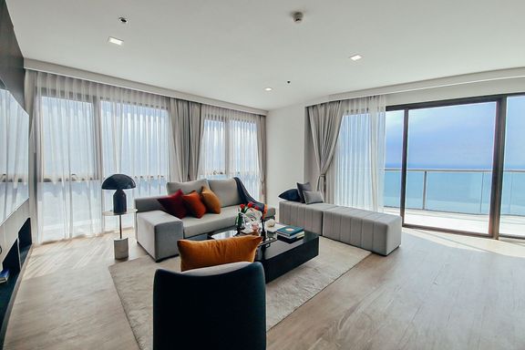 Indulge in 180-Degree Ocean Views from a Luxurious Penthouse at AERAS Beachfront Jomtien Discover your own private haven along Jomtien Beach with thi...