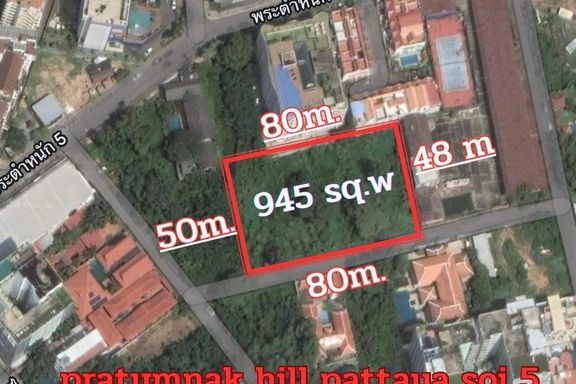 Prime Land for Sale in Pattaya! GOLDEN LOCATION: Phra Tamnak Soi 5 (Beach Access Road) Just 400m from the beach! LAND DETAILS: Size: 2 Rai 1 Ngan 45...