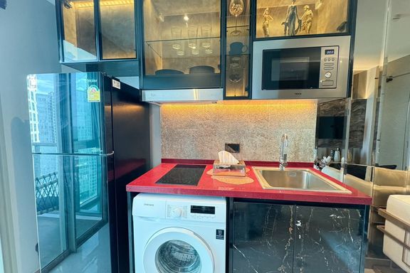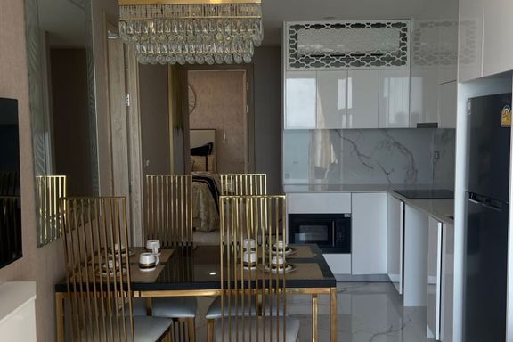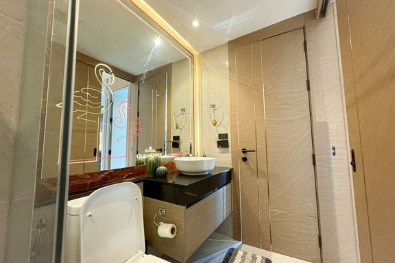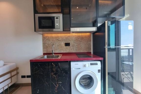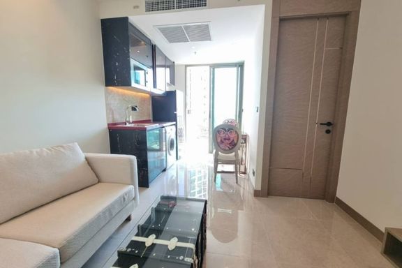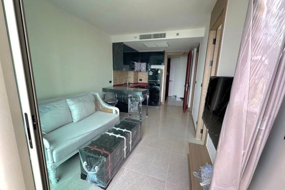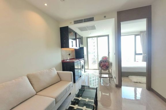Luxurious 1-bedroom condo at The Riviera Jomtien. Located on the 38th floor, enjoy stunning city views of Pattaya. This spacious 35.60 sq.m unit is fu...