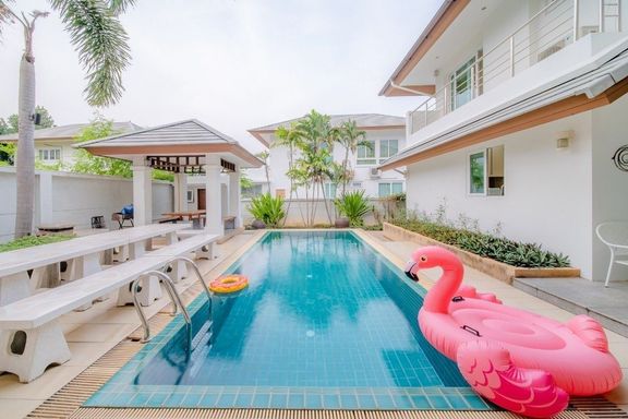 Experience true luxury and relaxation with this meticulously designed modern tropical pool villa, ideally located in a prime area of Pattaya, just 200...