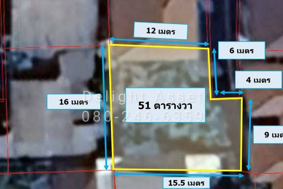 - Land : 51 sq.wa - Size : Width 15.5 m x Depth 16 m - Suitable to build house / Home office - Location : ----- ....