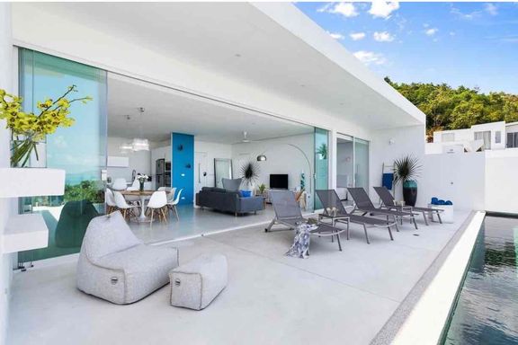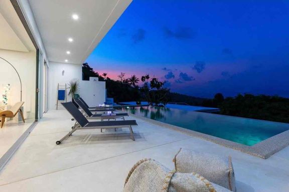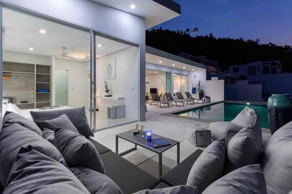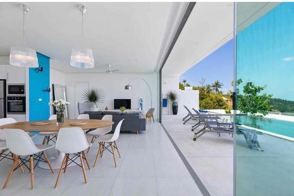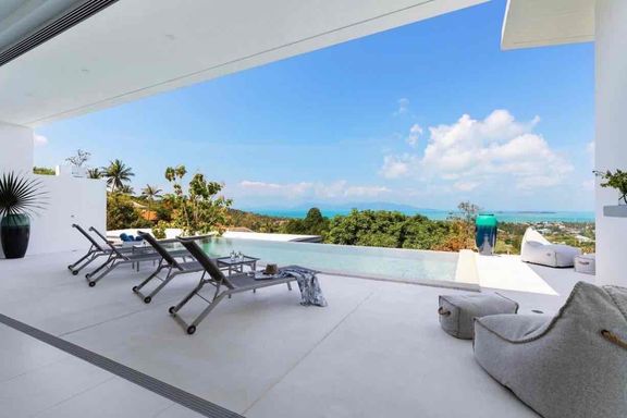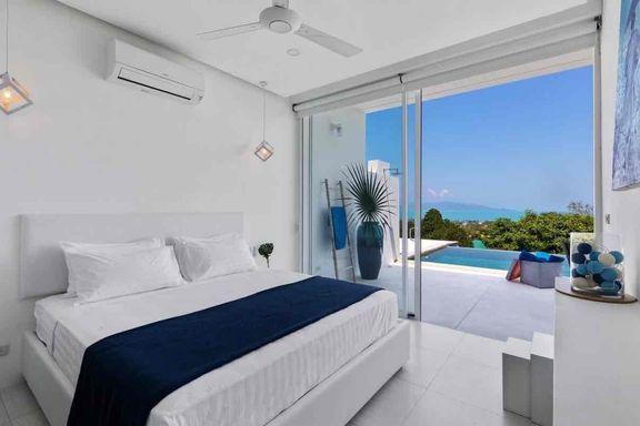 Description Very beautiful modern, recent villa, 3 bedrooms, with all the amenities of an upscale villa, located slightly high on the hill of Bophut a...
