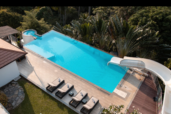 This luxury villa comprises 600 square meters (6460 square feet) of living space set in a 3045m2 landscaped property in a rainforest at the northweste...