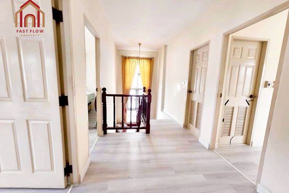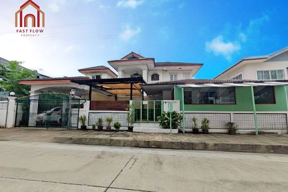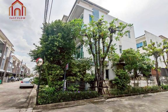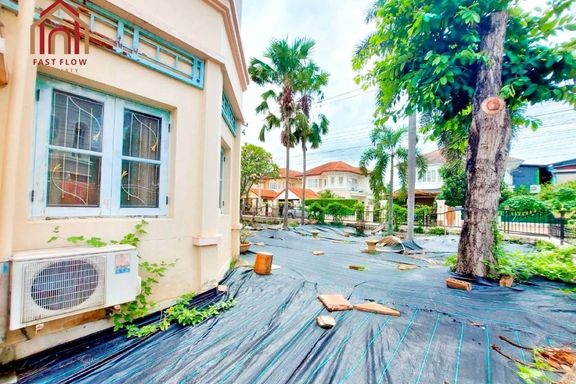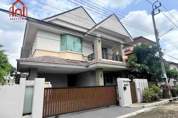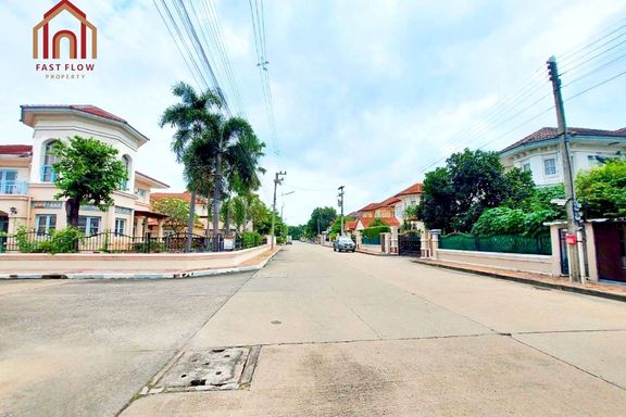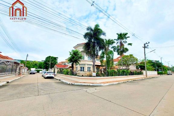 Corner house for sale at Prapawan Home 1, Suwinthawong Road, Soi Bueng Khwang 1/1, Suwinthawong 28. Wide frontage, kitchen extension, multipurpose roo...