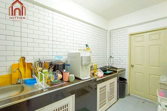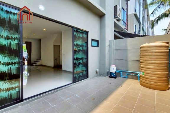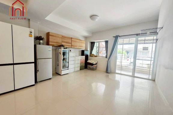 Townhouse for sale, Phirom Ville Thian Thale 20, best value in the project! Thai kitchen extension Entirely granite-floored townhouse in Bang Khun Thi